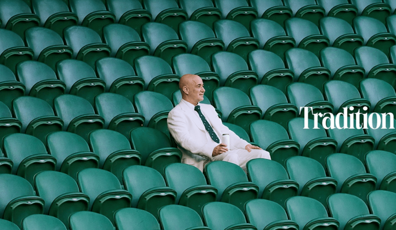 Stella Artois x Agassi (carousel) — Fuses Agassi's iconic rebellion against Wimbledon's dress code with the brand's "fashionably late" arrival, positioning both as sophisticated non-conformists.
